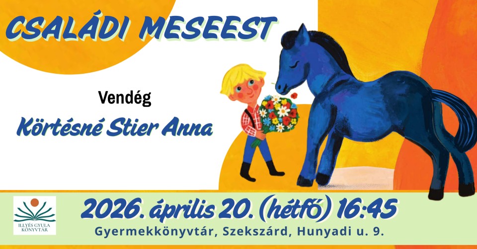 Családi meseest – Körtésné Stier Anna 2026.04.20. 2026. április 20. | Gyermek és ifjúsági Map Unavailable Időpont Date(s) - 2026. 04 20.16:45 - 17:45 Helyszín Tudásközpont Kategóriák Gyermek és ifjúsági Facebook esemény